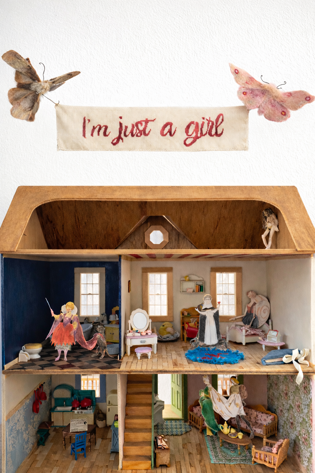 “I’m just a Girl”Instalación en Técnica mixta61cm x 57cm x 41cm 2024 La obra reivindica prácticas históricamente consideradas "menores", como el bordado, para cuestionar la representación del cuerpo femenino como un ente creador perpetuo y vulnerado. La frase bordada "I’m just a girl", suspendida sobre la instalación, sintetiza la problemática de ser reducida a la biología y lo social, ofreciendo una reflexión aguda y visualmente poderosa sobre el arte, el cuerpo y el habitar femenino.